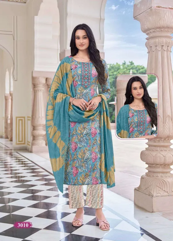 Capsule Cotton Stright Top Bottom Dupatta Set | TS3129