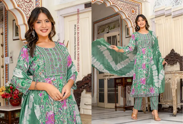Cotton Nayra cut Top Bottom Dupatta set | TS3107