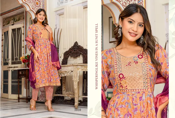 Cotton Nayra cut Top Bottom Dupatta set | TS3109