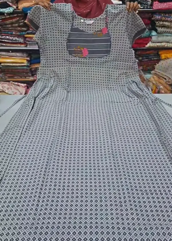 Premium Cotton Frock Nighty with Adjustable Rope & Side Pocket | NT3378